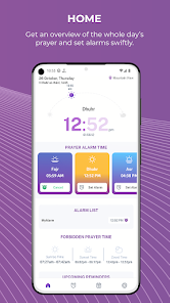 Prayer Alarm är en användbar app för att hålla koll på dagliga Salat-tider. Med möjlighet att ställa in anpassade alarm för varje bön, säkerställs att du aldrig missar en bön. Appen erbjuder också en tyst läge-funktion för att undvika störningar under böner. Den ger exakta tider för soluppgång och solnedgång, samt information om förbjudna tider för att utföra Salat.